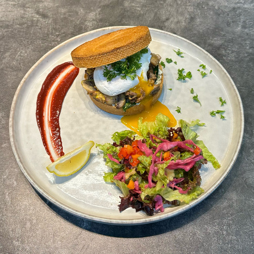 رول نيويورکي، رست بيف، قارچ، اسفناج، پنير، پوچد اگ
